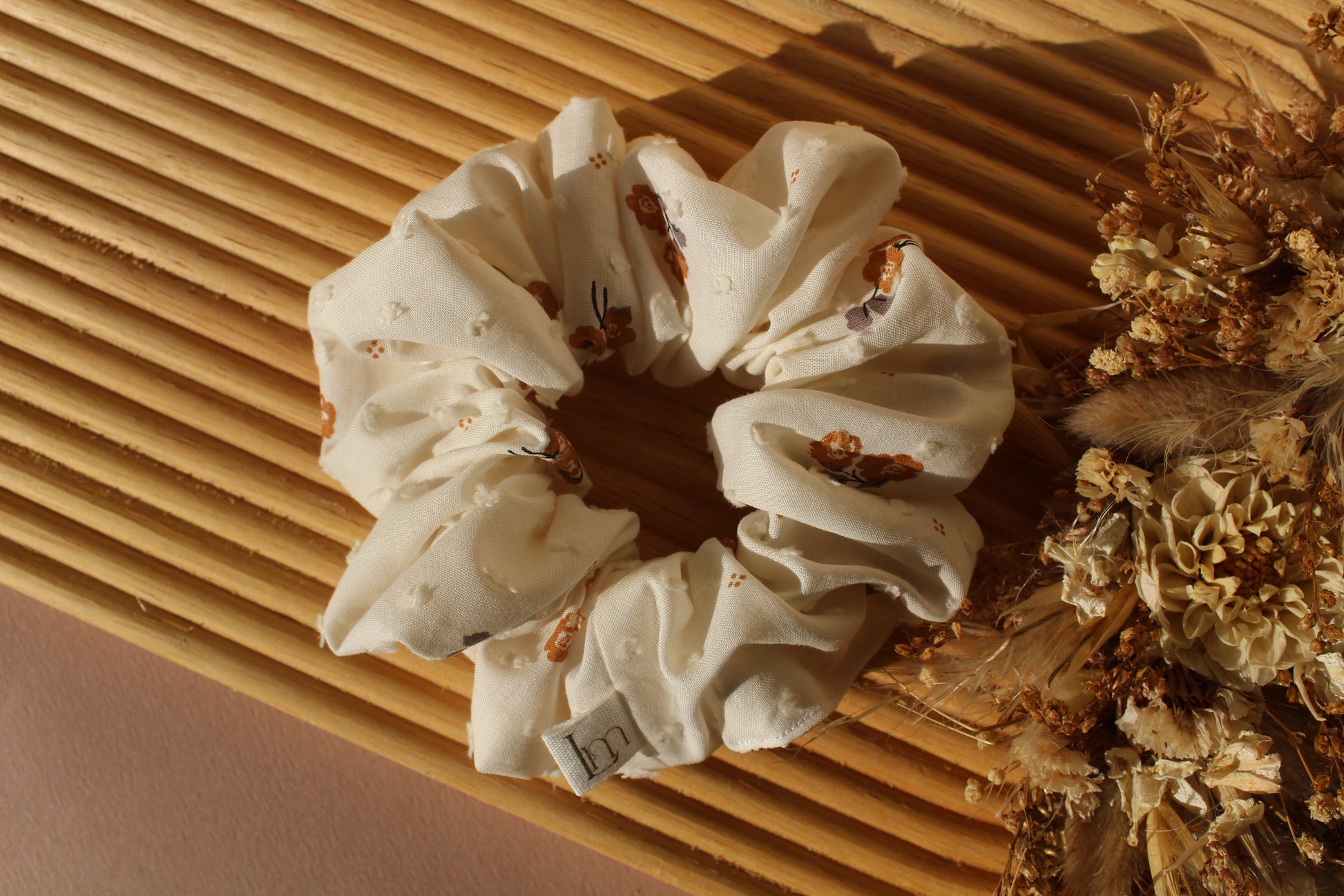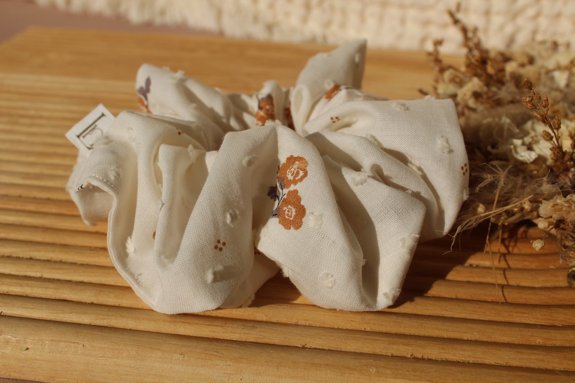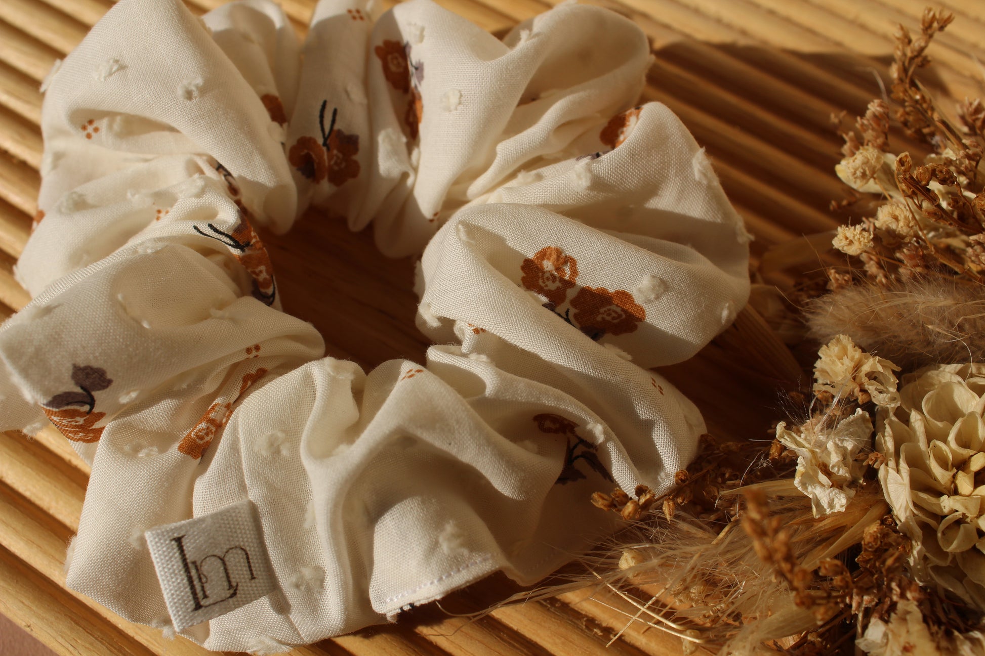 Découvrez le chouchou Ambre, confectionné en popeline de coton plumetis délicate, sublimé par un élégant imprimé floral marron. Ce modèle automnal allie douceur et légèreté, idéal pour apporter une touche sophistiquée et naturelle à votre coiffure tout en respectant la délicatesse des cheveux. Parfait pour sublimer vos looks d’automne avec une note raffinée et discrète.