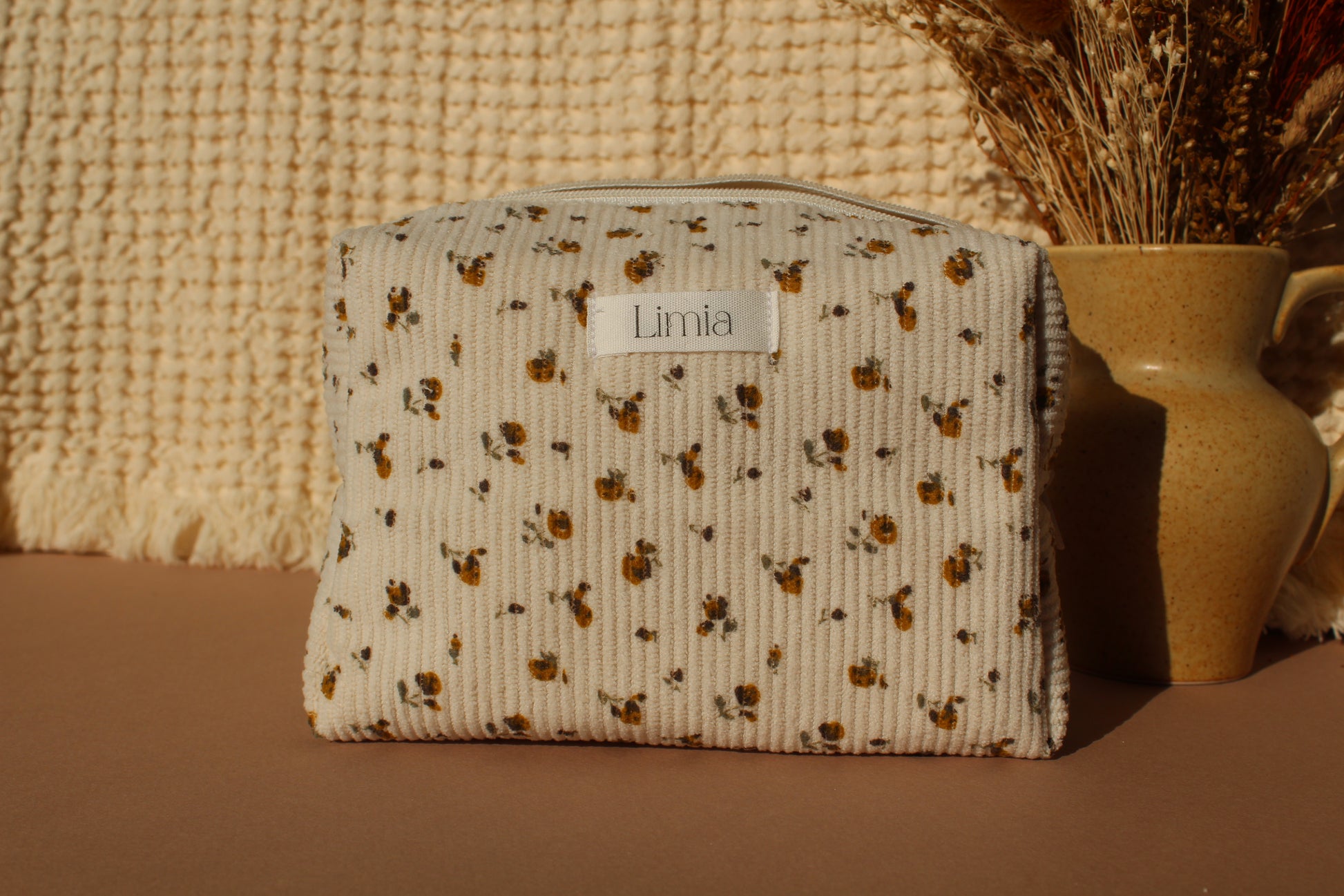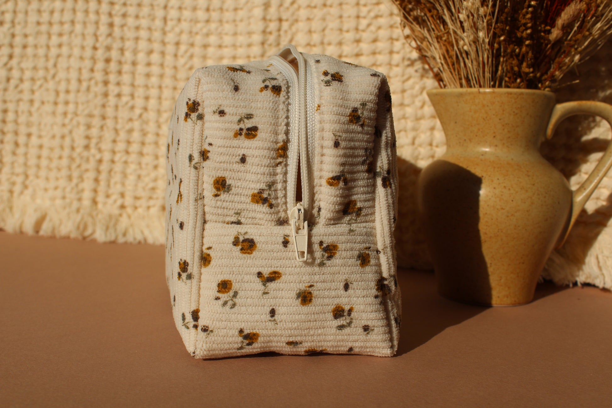 La trousse de toilette Florine allie élégance et raffinement avec son velours côtelé fleuri d’une grande finesse. Son intérieur en satin couleur champagne offre une douceur luxueuse tout en protégeant vos essentiels de beauté. Idéale pour organiser vos produits avec style, elle conjugue praticité et allure sophistiquée pour un usage quotidien ou en voyage.