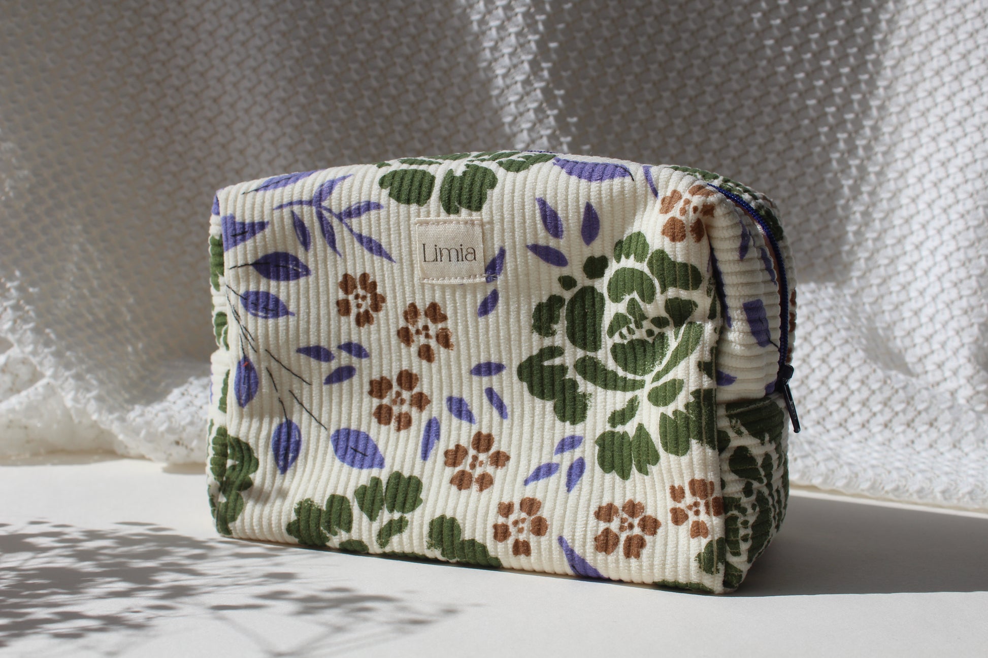 Découvrez notre magnifique trousse de toilette Lina, conçue en velours côtelé fleuri. Elle vous accompagne lors de vos voyages avec élégance et praticité. Gardez vos essentiels de beauté à portée de main dans ce modèle compact et ravissant.