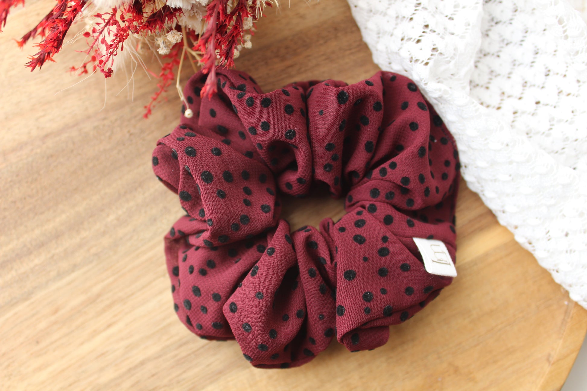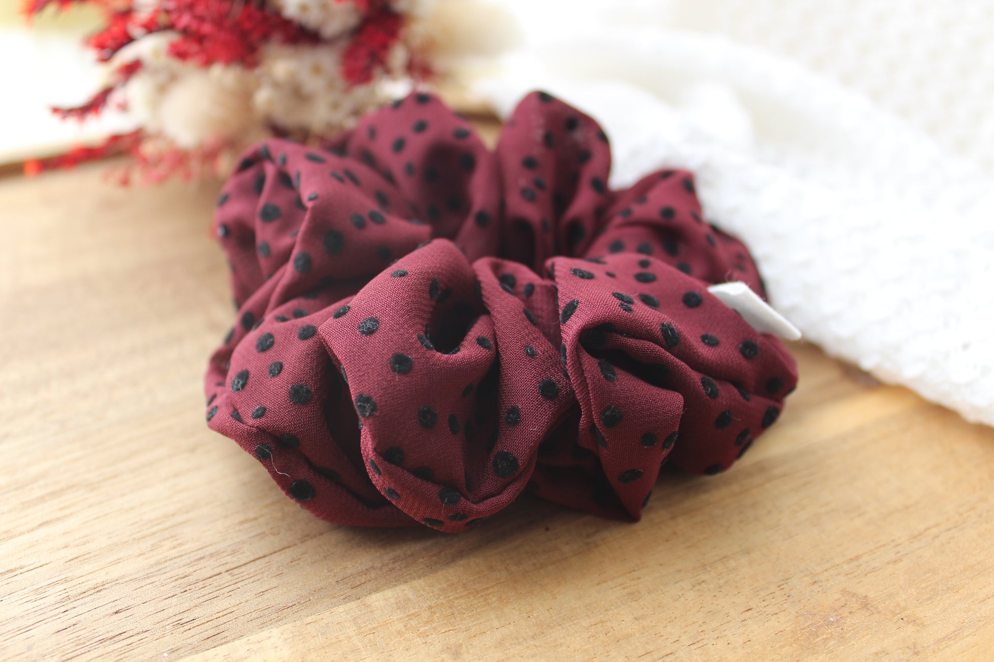 Nora incarne l'élégance discrète avec son chouchou en mousseline bordeaux orné de petits pois noirs subtils. Cette pièce tendance allie sobriété et raffinement, parfaite pour sublimer vos cheveux au quotidien ou en occasion. La mousseline délicate offre une douceur incomparable tout en apportant une touche de sophistication intemporelle à votre style.