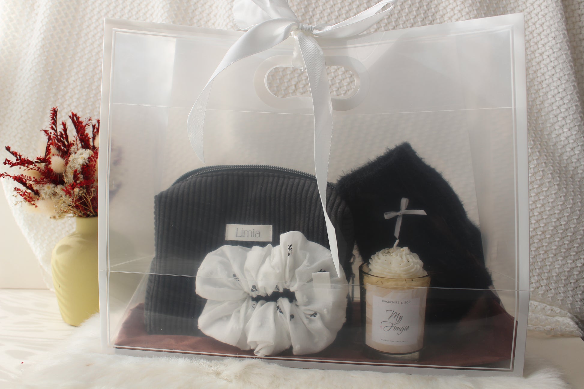 Plongez dans une expérience cocooning irrésistible avec ce coffret cadeau audacieux. Composé d'une trousse Cereza élégante, d'un chouchou assorti, de chaussettes pilou pilou ultra-douces et d'une mini bougie parfumée Chantilly, cet ensemble capture l'essence du bien-être. Chaque élément a été sélectionné pour transformer vos moments de détente en véritables rituels de luxe. Un cadeau qui ose séduire et réconforter à la fois.