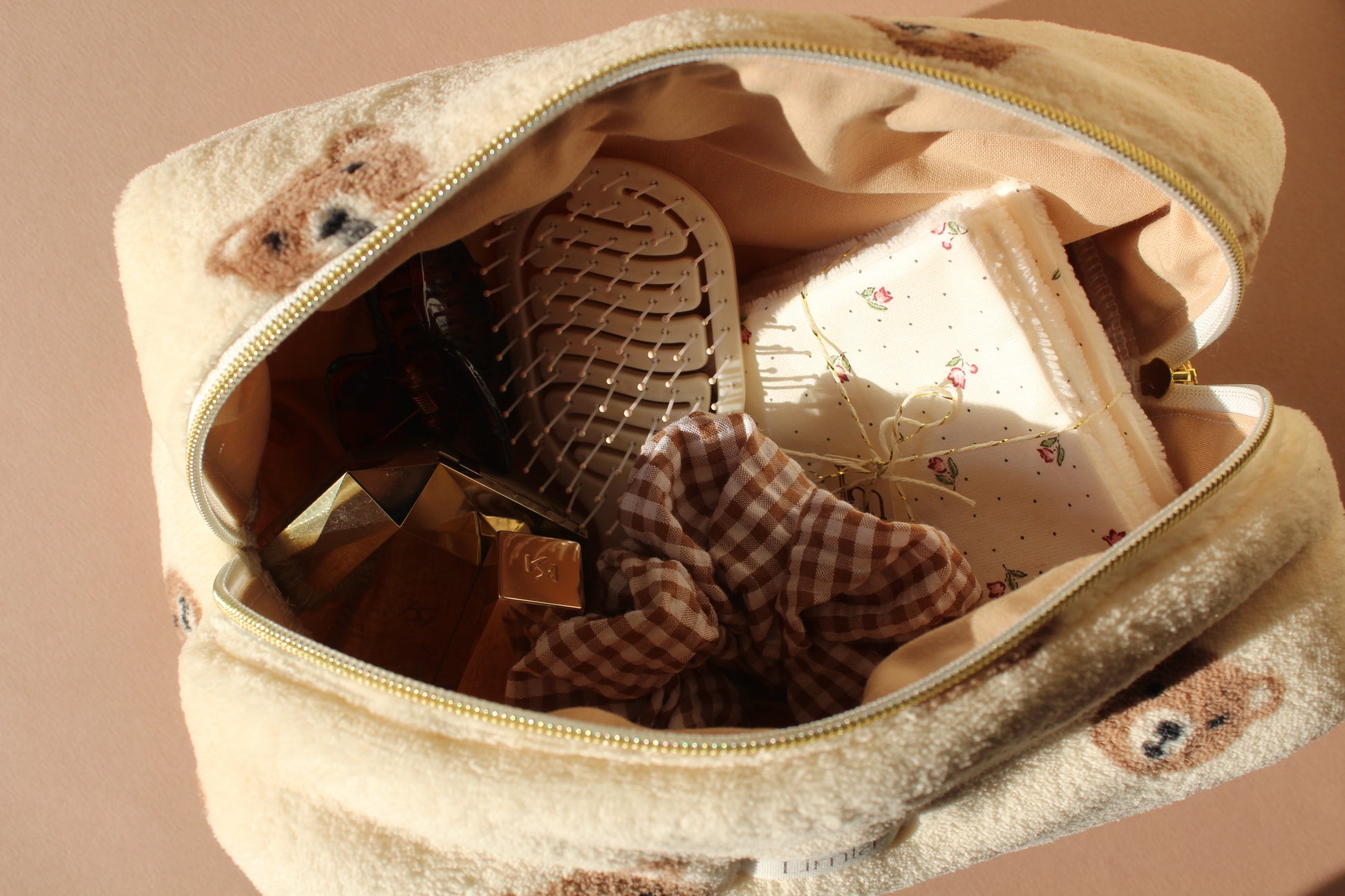 Osez le style avec la trousse Teddy Bear, moelleuse et audacieuse.